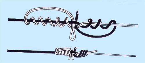 Der Blood-Knoten in der verbesserten Ausführung um unterschiedlich starke Schnüre miteinander zu verbinden.